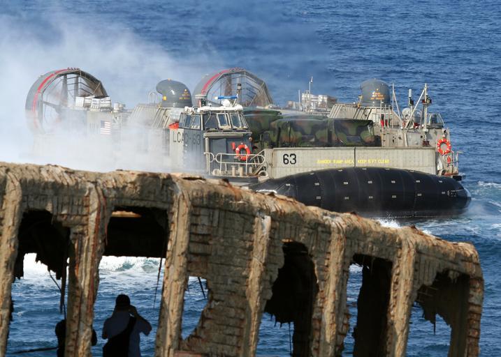 | Keywords: US Navy 070313-N-9228S-003 Landing Craft Air Cushion (LCAC) 63, assigned to dock landing ship USS Harpers Ferry (LSD 49), transits Sailors and Marines to the historic location of the Battle of Iwo Jima.jpg en IWO JIMA Japan March 13 2007 - Landing Craft Air Cushion LCAC 63 assigned to dock landing ship USS Harpers Ferry LSD 49 transits Sailors and Marines to the historic location of the Battle of Iwo Jima While visiting the island Sailors learned about the history of the World War II battle through war remnants and used the time on the island to honor fallen service members of both forces Harpers Ferry with embarked 1st Marine Aircraft Wing MAW is here to support the 62nd Commemoration of the Battle of Iwo Jima March 14 2007 U S Navy photo by Mass Communication Specialist Seaman Aaron L Stevens RELEASED 2007-03-13 070313-N-9228S-003 Navy http //www navy mil/view_image asp id 43927 U S Navy photo by Mass Communication Specialist Seaman Aaron L Stevens PD-USGov-Military-Navy Images from US Navy location Iwo Jima Japan LCAC-63 ship 1993 Aboard USS Harpers Ferry LSD-49 Watercraft in motion Concrete ship wrecks |