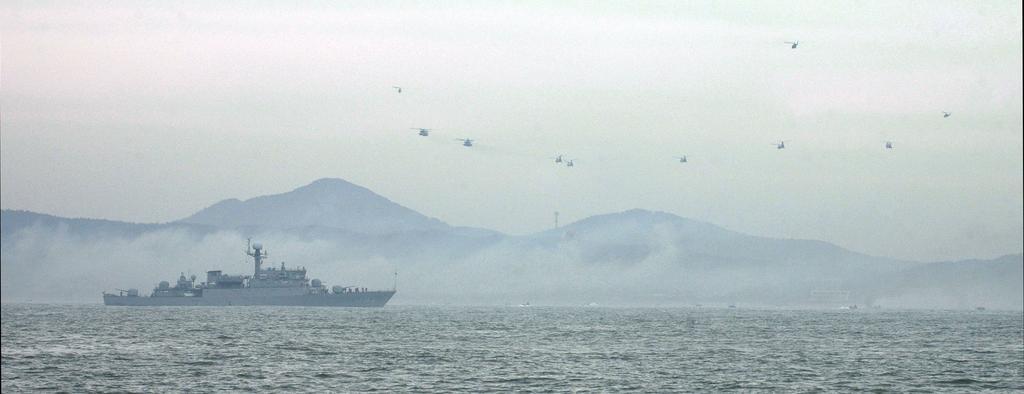 | Keywords: US Navy 070329-N-6274T-035 Republic of Korea Sinsung (PCC-783) patrols the water as a wave of U.S. Marine Corps helicopters fly overhead, during an assault on Manripo Beach, South Korea.jpg en SOUTH CHINA SEA March 29 2007 - Republic of Korea Sinsung PCC-783 patrols the water as a wave of U S Marine Corps helicopters fly overhead during an assault on Manripo Beach South Korea in support of Exercise Foal Eagle More than 4 400 Sailors and Marines from the United States and Republic of Korea participated in this year's Exercise Foal Eagle Foal Eagle is an annually scheduled combined/joint exercise involving forces in resolve to support the ROK against any external aggression while improving ROK and U S combat readiness through joint/combined interoperability Essex is the Navy's only forward/deployed multi-purpose amphibious assault ship and is sailing with Foal Eagle Amphibious Task Force operating off the west coast of Korea U S Navy photo by Mass Communication Specialist 2nd Class Corey Truax RELEASED Pohang class corvette PCC-783 Sinseong 2007-03-29 070329-N-6274T-035 Navy http //www navy mil/view_image asp id 44546 U S Navy photo by Mass Communication Specialist 2nd Class Corey Truax PD-USGov-Military-Navy Foal Eagle 2007 Pohang class corvette 783 |