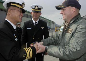 Keywords: US Navy 070404-N-8487G-281 USS Juneau (LPD 10) Commanding Officer, Capt. John D. Alexander exchanges greetings and gifts with Capt. Rade Sun Kim of ROKS Chung Nam (FF 953) after Juneau arrived in Busan, for a scheduled visit.jpg en BUSAN Republic of Korea April 4 2007 - USS Juneau LPD 10 Commanding Officer Capt John D Alexander exchanges greetings and gifts with Capt Rade Sun Kim of ROKS Chung Nam FF 953 after Juneau arrived in Busan for a scheduled visit While here Sailors and Marines will have the opportunity to participate in a number of cultural community service and friendship-building sporting activities Juneau serves under Task Force 76 the Navy s only forward-deployed amphibious force U S Navy Photo by Mass Communication 2nd Class Michael Gomez RELEASED 2007-04-04 070404-N-8487G-281 Navy http //www navy mil/view_image asp id 44941 U S Navy Photo by Mass Communication 2nd Class Michael Gomez PD-USGov-Military-Navy Images from US Navy location BUSAN Korea Aboard USS Juneau LPD-10 Naval officers of South Korea |