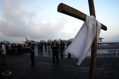 Keywords: US Navy 070408-N-9928E-099 Sailors enjoy a reception with pastries and fruit provided by supply department after the Easter Sunrise Service on the flight deck of Nimitz-class aircraft carrier USS John C. Stennis (CVN 74).jpg en ARABIAN SEA April 8 2007 - Sailors enjoy a reception with pastries and fruit provided by supply department after the Easter Sunrise Service on the flight deck of Nimitz-class aircraft carrier USS John C Stennis CVN 74 John C Stennis Carrier Strike Group is on a regularly scheduled deployment in support of Maritime Security Operations MSO MSO help set the conditions for security and stability as well as aid counter-terrorism and security efforts to the regional nations U S Navy photo by Mass Communication Specialist Seaman Josue Leopoldo Escobosa RELEASED 2007-04-08 070408-N-9928E-099 Navy http //www navy mil/view_image asp id 44931 U S Navy photo by Mass Communication Specialist Seaman Josue Leopoldo Escobosa PD-USGov-Military-Navy Easter sunrise services Aboard USS John C Stennis CVN-74 |