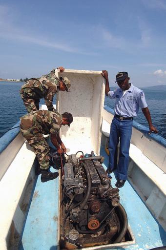 | Keywords: US Navy 070521-N-0989H-008 Honduran sailors inspect an engine for proper functions prior to using the vessel for small boat training with U.S. service members.jpg en PUERTO CASTILLAS Honduras May 21 2007 - Honduran sailors inspect an engine for proper functions prior to using the vessel for small boat training with U S service members from the International Training Division and the Expeditionary Training Command Task Group 40 9 TG 40 9 is deployed as part of the pilot Global Fleet Station GFS to the Caribbean basin and Central America The mission is designed to validate the GFS concept for the Navy and support U S Southern Command objectives for its area of responsibility by enhancing cooperative partnerships with regional maritime services and improving operational readiness for the participating partner nations Photo by Mass Communication Specialist 1st Class David Hoffman RELEASED 2007-05-21 070521-N-0989H-008 Navy http //www navy mil/view_image asp id 49021 U S Navy photo PD-USGov-Military-Navy Images from US Navy location Puerto Castilla Honduras Small boats |