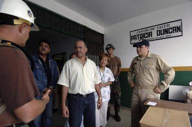 Keywords: US Navy 070707-N-6278K-015 Ensign Leonard Neal, Construction Battalion Maintenance Unit (CBMU) 202 officer in charge, thanks Dr. Edgar Coto, regional director of Centro De Salud Patricia Duncan, for welcoming his unit to their.jpg en COLON Panama July 7 2007 - Ensign Leonard Neal Construction Battalion Maintenance Unit CBMU 202 officer in charge thanks Dr Edgar Coto regional director of Centro De Salud Patricia Duncan for welcoming his unit to their establishment CBMU-202 is attached to Military Sealift Command hospital ship USNS Comfort T-AH 20 refurbishing this site as part of Comfort s humanitarian efforts Comfort is on a four-month humanitarian deployment to Latin America and the Caribbean providing medical treatment to patients in a dozen countries While deployed Comfort is under operational control of U S Naval Forces Southern Command and tactical control of Destroyer Squadron 24 U S Navy photo by Mass Communication Specialist 2nd Class Joan E Kretschmer RELEASED 2007-07-07 070707-N-6278K-015 Navy http //www navy mil/view_image asp id 48128 U S Navy photo by Mass Communication Specialist 2nd Class Joan E Kretschmer PD-USGov-Military-Navy United States Navy in Colon Panama Aboard USNS Comfort T-AH-20 |