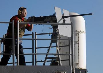 | Keywords: US Navy 070719-N-7981E-237 Aviation Ordnanceman Airman Jason Rowe fires a .50-caliber machine gun from the fantail of Nimitz-class aircraft carrier USS Abraham Lincoln (CVN 72) during a graded, live-fire killer barrel exercise.jpg en PACIFIC OCEAN July 19 2007 - Aviation Ordnanceman Airman Jason Rowe fires a 50-caliber machine gun from the fantail of Nimitz-class aircraft carrier USS Abraham Lincoln CVN 72 during a graded live-fire killer barrel exercise Killer barrel tests the ability of Lincoln's machine gun crews to engage and destroy small surface threats by firing on floating target barrels equipped with smoke markers Lincoln is underway conducting carrier qualifications off the coast of Southern California U S Navy photo by Mass Communication Specialist 3rd Class James R Evans RELEASED 2007-07-19 070719-N-7981E-237 Navy http //www navy mil/view_image asp id 48551 U S Navy photo by Mass Communication Specialist 3rd Class James R Evans PD-USGov-Military-Navy Browning M2 of the US Navy Aviation Ordnanceman Aboard USS Abraham Lincoln CVN-72 Shooting |