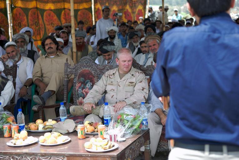 | Keywords: US Navy 070731-N-3385W-050 Commanding Officer of Provincial Reconstruction Team Khost, U.S. Navy Cmdr. David Adams listens to Governor Arsala Jamal during his speech during the groundbreaking ceremony for the Dadwal Bridge.jpg  en DADWAL Afghanistan July 31 - Commanding Officer of Provincial Reconstruction Team Khost U S Navy Cmdr David Adams listens to Governor Arsala Jamal during his speech during the groundbreaking ceremony for the Dadwal Bridge Governor Jamal thanked the PRT for their help in rebuilding the province U S Navy photo by Ensign Christopher Weis RELEASED 070731-N-3385W-050 Navy http //www navy mil/view_image asp id 48897 U S Navy photo by Ensign Christopher Weis PD-USGov-Military-Navy Dave Adams Arsala Jamal Khost Province in the War in Afghanistan 2001-present Provincial Reconstruction Team in Khost Afghanistan Ground-breaking ceremonies |