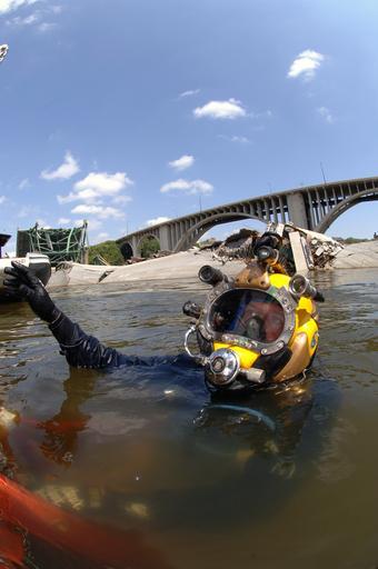 | Keywords: US Navy 070811-N-3093M-007 Navy Diver 1st Class Joshua Harsh attached to Mobile Diving and Salvage Unit (MDSU) 2 from Naval Amphibious Base Little Creek, Va., prepares to leave the surface on a salvage dive in the Mississippi R.jpg en MINNEAPOLIS Minn Aug 11 2007 - Navy Diver 1st Class Joshua Harsh attached to Mobile Diving and Salvage Unit MDSU 2 from Naval Amphibious Base Little Creek Va prepares to leave the surface on a salvage dive in the Mississippi River MDSU-2 is assisting other federal state and local authorities managing disaster and recovery efforts at the site of the I-35 bridge collapse U S Navy photo by Senior Chief Mass Communication Specialist Andrew McKaskle RELEASED 2007-08-11 070811-N-3093M-007 Navy http //www navy mil/view_image asp id 49421 U S Navy photo by Senior Chief Mass Communication Specialist Andrew McKaskle PD-USGov-Military-Navy I-35W Mississippi River Bridge collapse United States Navy Mobile Diving and Salvage Unit Two Lightweight demand diving helmets United States Navy Divers Diving lights Underwater video equipment |