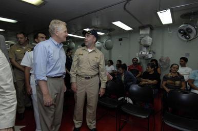 | Keywords: US Navy 070817-N-6278K-212 Dr. S. Ward Cascells, left, Assistant Secretary of Defense for Health Affairs, is led on a tour of hospital ship USNS Comfort (T-AH 20) by Capt. Bob Kapcio, Comfort's mission commander, during a sched.jpg en MANTA Ecuador Aug 17 2007 - Dr S Ward Cascells left Assistant Secretary of Defense for Health Affairs is led on a tour of hospital ship USNS Comfort T-AH 20 by Capt Bob Kapcio Comfort's mission commander during a scheduled port visit Comfort is on a four-month humanitarian deployment to Latin America and the Caribbean providing medical treatment to patients in a dozen countries U S Navy photo by Mass Communication Specialist 2nd Class Joan Kretschmer RELEASED 2007-08-17 070817-N-6278K-212 Navy http //www navy mil/view_image asp id 49664 U S Navy photo by Mass Communication Specialist 2nd Class Joan Kretschmer PD-USGov-Military-Navy USNS Comfort T-AH-20 in Manta Aboard USNS Comfort T-AH-20 |
