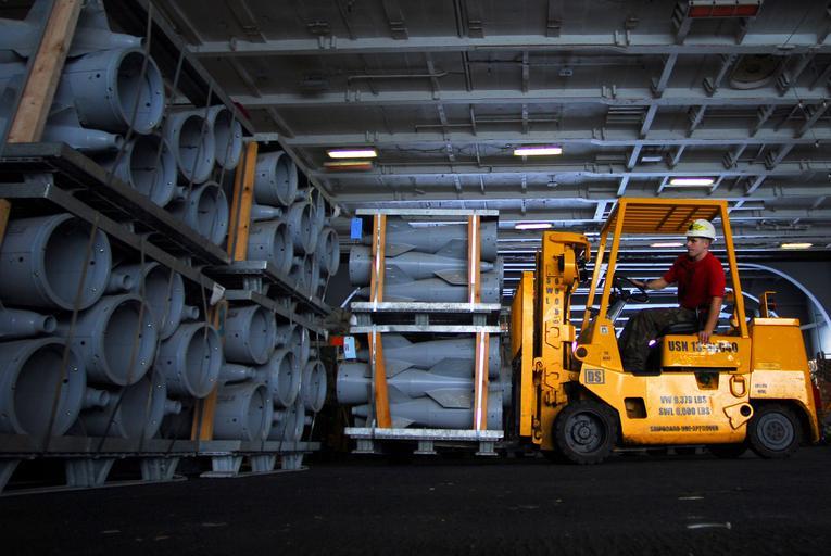 View Original:US_Navy_070818-N-2659P-066_Aviation_Ordnanceman_3rd_Class_Corey_Gray,_from_weapons_department,_transports_crates_of_ammunition_through_the_hangar_bay_of_Nimitz-class_aircraft_carrier_USS_John_C._Stennis_(CVN_74).jpg (3872x2592)