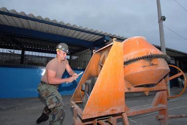 | Keywords: US Navy 070819-N-8704K-011 Builder 2nd Class Charlie Page, a Seabee with Construction Battalion Maintenance Unit (CBMU) 20, starts a concrete mixer to lay wheelchair ramps at the Luis Teodoro Cantos School.jpg en MANTA Ecuador Aug 19 2007 - Builder 2nd Class Charlie Page a Seabee with Construction Battalion Maintenance Unit CBMU 20 starts a concrete mixer to lay wheelchair ramps at the Luis Teodoro Cantos School The Seabees of CBMU 202 attached to hospital ship USNS Comfort T-AH 20 are taking part in four community relations projects while in Ecuador Comfort is on a four-month humanitarian deployment to Latin America and the Caribbean providing medical treatment to patients in a dozen countries U S Navy photo by Mass Communication Specialist 2nd Class Joshua Karsten RELEASED 2007-08-19 070819-N-8704K-011 Navy http //www navy mil/view_image asp id 49730 U S Navy photo by Mass Communication Specialist 2nd Class Joshua Karsten PD-USGov-Military-Navy USNS Comfort T-AH-20 in Manta Builder United States Navy Cement mixers |