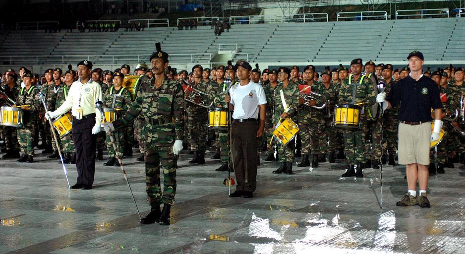| Keywords: US Navy 070902-N-5174T-001 Chief Musician Jay Loose, right, and drum majors rehearse for the closing ceremony of the Kuala Lumpur International Tattoo 2007.jpg en KUALA LUMPUR Malaysia Sept 2 2007 Chief Musician Jay Loose right and drum majors from the Malaysian Armed Forces Band the Republic of the Philippines Air Force Band and the Republic of Korea Navy Symphonic Band rehearse for the closing ceremony of the Kuala Lumpur International Tattoo 2007 The Tatoo scheduled for Sept 6-8 will celebrate the 50th anniversary of Malaysia s independence and feature military bands from the United States Brunei France India Jordan the Republic of Korea the Republic of the Philippines the Republic of Singapore the Kingdom of Thailand the Islamic Republic of Pakistan and the United Kingdom and a Maori cultural group from New Zealand U S Navy photo by Mass Communication Specialist 1st Class Shane Tuck RELEASED 2007-09-02 070902-N-5174T-001 Navy http //www navy mil/view_image asp id 50433 U S Navy photo by Mass Communication Specialist 1st Class Shane Tuck PD-USGov-Military-Navy Images from US Navy location Kuala Lumpur Malaysia Military bands Military of Malaysia Philippine Air Force Republic of Korea Navy Drum majors |