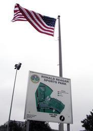 | Keywords: US Navy 070906-N-9162R-003 The flag flies proudly over the Ronald Reagan Sports Park following a special dedication ceremony performed by chief petty officer selectees attached to Nimitz-Class aircraft carrier USS Ronald Reagan.jpg en TEMECULA Calif Sept 6 2007 - The flag flies proudly over the Ronald Reagan Sports Park following a special dedication ceremony performed by chief petty officer selectees attached to Nimitz-Class aircraft carrier USS Ronald Reagan CVN 76 The ceremony marked the first time a flag has flown permanently over the sports park which is home to several little league teams The teams now plan to play the national anthem and recite the Pledge of Allegiance before games U S Navy photo by Chief Mass Communication Specialist Donnie Ryan RELEASED 2007-09-06 070906-N-9162R-003 Navy http //www navy mil/view_image asp id 50535 U S Navy photo by Chief Mass Communication Specialist Donnie Ryan PD-USGov-Military-Navy Images from US Navy location TEMECULA Calif |
