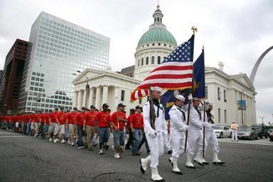 Keywords: US Navy 070906-N-3271W-006 The Navy Recruiting District St. Louis Color Guard marches members of the 49th Cardinal Company to Busch Stadium, to be sworn into the Navy in a ceremony before a game between the Cardinals and the Pi.jpg en ST LOUIS Sept 6 2007 The Navy Recruiting District St Louis Color Guard marches members of the 49th Cardinal Company to Busch Stadium to be sworn into the Navy in a ceremony before a game between the Cardinals and the Pittsburgh Pirates The 49th is a group of enlisted recruits from Navy Recruiting District St Louis so named because the St Louis Cardinals have sponsored such groups annually since 1959 The enlistment ceremony is part of St Louis Navy Week which runs Aug 28 to Sept 6 U S Navy photo by Chief Mass Communication Specialist Gary Ward RELEASED 2007-09-06 070906-N-3271W-006 Navy http //www navy mil/view_image asp id 50501 U S Navy photo by Chief Mass Communication Specialist Gary Ward PD-USGov-Military-Navy Photographs of military flags of the United States High-rises in St Louis Missouri Color guards of the United States Navy Images from US Navy location St Louis |