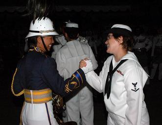 | Keywords: US Navy 070907-N-5174T-002 Musician 3rd Class Helena Giamarco, a Pacific Fleet band member, says goodbye to a friend from the Philippine Air Force Band following the second night of performances at the Kuala Lumpur Internationa.jpg en KUALA LUMPUR Malaysia Sept 7 2007 - Musician 3rd Class Helena Giamarco a Pacific Fleet band member says goodbye to a friend from the Philippine Air Force Band following the second night of performances at the Kuala Lumpur International Tattoo 2007 The Tattoo scheduled for Sept 6-8 celebrates the 50th anniversary of Malaysia s independence and features international military bands from the United States Jordan Brunei France India the Republic of the Philippines the Republic of Singapore the Kingdom of Thailand Korea the Islamic Republic of Pakistan the United Kingdom and a Maori cultural group from New Zealand U S Navy photo by Mass Communication Specialist 1st Class Shane Tuck RELEASED 2007-09-07 070907-N-5174T-002 Navy http //www navy mil/view_image asp id 50662 U S Navy photo by Mass Communication Specialist 1st Class Shane Tuck PD-USGov-Military-Navy Images from US Navy location Kuala Lumpur Malaysia Philippine Air Force Sailor suits 2007 photographs Military people in 2007 People with ribbon bars Sailor collars Female sailors September 2007 in Asia |
