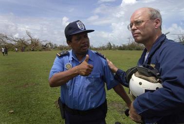 Keywords: US Navy 070907-N-1810F-029 USS Wasp (LHD 1) Expeditionary Strike Group Commodore Randy Snyder gets the thumbs up from a Nicaraguan police officer during Hurricane Felix disaster relief operations.jpg en PUERTO CABEZAS Nicaragua Sept 7 2007 USS Wasp LHD 1 Expeditionary Strike Group Commodore Randy Snyder gets the thumbs up from a Nicaraguan police officer during Hurricane Felix disaster relief operations U S Southern Command diverted Navy personnel to Nicaragua from an international maritime exercise in Panama on September 5 U S Navy photo by Mass Communication Specialist 2nd Class Todd Frantom RELEASED 2007-09-07 070907-N-1810F-029 Navy http //www navy mil/view_image asp id 50633 U S Navy photo by Mass Communication Specialist 2nd Class Todd Frantom PD-USGov-Military-Navy Images from US Navy location PUERTO CABEZAS Nicaragua Aboard USS Wasp LHD-1 Impact of Hurricane Felix in Nicaragua Pictures by Mass Communication Specialist Todd Frantom Military people with thumbs up Police in Nicaragua