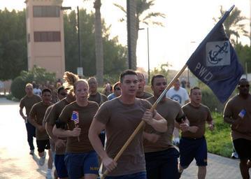 | Keywords: US Navy 070911-N-3005P-004 Engineering Aid Constructionman Jedediah Hawk carries the guidon while leading Seabees assigned to the NSA Bahrain Public Works Department in a group run during the 9-11 3K Remembrance Run.jpg en NAVAL SUPPORT ACTIVITY Bahrain Sept 11 2007 - Engineering Aid Constructionman Jedediah Hawk carries the guidon while leading Seabees assigned to the NSA Bahrain Public Works Department in a group run during the 9/11 3K Remembrance Run More than 400 service members Department of Defense personnel and other individuals participated in the early morning event to remember the thousands of individuals killed six years ago during the Sept 11 terrorist attack U S Navy photo by Mass Communication Specialist 2nd Class Aaron Pineda RELEASED 2007-09-11 070911-N-3005P-004 Navy http //www navy mil/view_image asp id 50760 U S Navy photo by Mass Communication Specialist 2nd Class Aaron Pineda PD-USGov-Military-Navy Guidons of the United States Navy Naval Support Activity Bahrain Sixth anniversary of the September 11 2001 attacks |