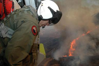 | Keywords: US Navy 071023-N-3069F-008 Chief Aviation Electronics Technician Rexford Sackett, assigned to Helicopter Sea Combat Squadron (HSC) 85, looks upon miles of burnt terrain as he and other Sailors prepare to help fend off the blaze.jpg en SAN DIEGO Oct 23 2007 - Chief Aviation Electronics Technician Rexford Sackett assigned to Helicopter Sea Combat Squadron HSC 85 looks upon miles of burnt terrain as he and other Sailors prepare to help fend off the blaze aboard an MH-60S Seahawk HSC-85 is providing helicopters specially equipped with a 420-gallon extinguishing trough used to dump water on San Diego's ongoing fire disaster The blaze has already forced more than 250 000 people from their homes U S Navy photo by Mass Communication Specialist 2nd Class Chris Fahey RELEASED 2007-10-23 071023-N-3069F-008 Navy http //www navy mil/view_image asp id 52042 U S Navy photo by Mass Communication Specialist 2nd Class Chris Fahey PD-USGov-Military-Navy Helicopter Sea Combat Squadron 85 United States Navy Helicopters fighting California wildfires of October 2007 Aviation Electronics Technician MH-60S Seahawk |