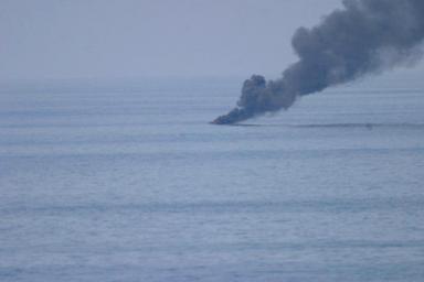 Keywords: US Navy 071028-N-0000X-185 A pirate skiff burns after being hit by several rounds from a 25mm gun aboard guided-missile destroyer USS Porter (DDG 78).jpg en INDIAN OCEAN Oct 28 2007 - A pirate skiff burns after being hit by several rounds from a 25mm gun aboard guided-missile destroyer USS Porter DDG 78 The skiff belonged to a group of pirates that boarded Panamanian-flagged cargo ship MV Golden Nori U S Navy photo RELEASED 2007-10-28 071028-N-0000X-185 Navy http //www navy mil/view_image asp id 52257 U S Navy photo PD-USGov-Military-Navy USS Porter DDG-78 Burning ships Piracy |