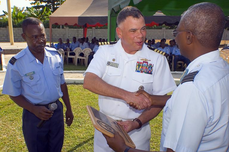 Keywords: US Navy 071128-N-8483H-005 Africa Partnership Station united Sailors from the U.S. Navy, airmen from Ghanaian air force, and soldiers from the Ghanaian army during a musical performance at Takoradi Air Station.jpg en TAKORADI Ghana Nov 28 2007 Africa Partnership Station united Sailors from the U S Navy airmen from Ghanaian air force and soldiers from the Ghanaian army during a musical performance at Takoradi Air Station The Sailors from the Commander Naval Forces Europe CNE Band spent three days with their host country nationals preparing for the event APS is an international effort aiming to enhance regional maritime safety and security in West and Central Africa that will bring international training teams from 14 different countries to Cameroon Gabon Ghana Senegal and Sao Tome and Principe and support more than 20 humanitarian assistance projects in the region U S Navy photo by Mass Communication Specialist 3rd Class James Hills Released 2007-11-28 071128-N-8483H-005 Navy http //www navy mil/view_image asp id 53398 U S Navy photo by Mass Communication Specialist 3rd Class James Hills PD-USGov-Military-Navy United States Navy in Ghana 2007 United States Navy in Sekondi-Takoradi Handshakes involving the military Africa Partnership Station 2007 People of the Ghana Army People of Ghana in 2007