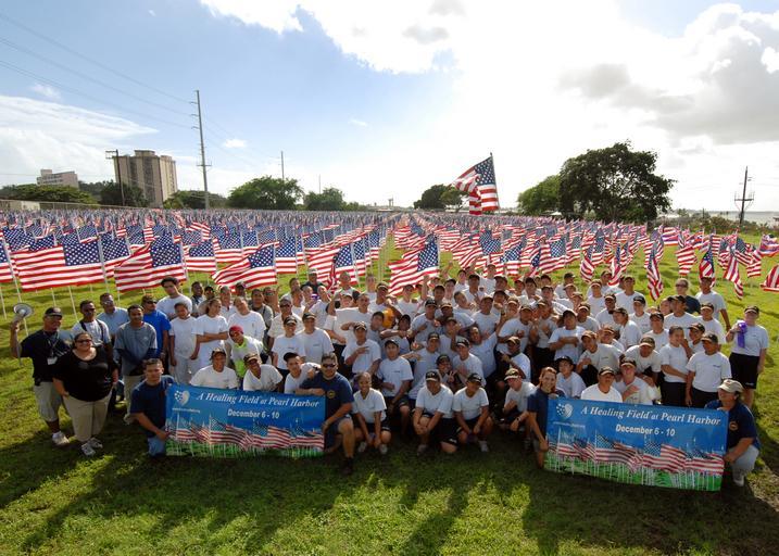 Keywords: US Navy 071205-N-5476H-044 Students from the Hawaii National Guard Youth Challenge Academy and volunteers from the Hawaii Job Corp pose for a group photo after placing ribbons and flags for the Healing Field Flag Memorial.jpg en PEARL HARBOR Hawaii Dec 5 2007 Students from the Hawaii National Guard Youth Challenge Academy and volunteers from the Hawaii Job Corp pose for a group photo after placing ribbons and flags for the Healing Field Flag Memorial where 2 408 U S flags were placed in the ground in commemoration of those who gave their lives on that historic day in 1941 Dec 7 2007 marks the 66th anniversary of the attack on Pearl Harbor U S Navy photo by Mass Communication Specialist 2nd Class Michael Hight Released 2007-12-05 071205-N-5476H-044 Navy http //www navy mil/view_image asp id 53673 U S Navy photo by Mass Communication Specialist 2nd Class Michael Hight PD-USGov-Military-Navy 66th anniversary of Pearl Harbor attack Images from US Navy location Pearl Harbor Hawaii |