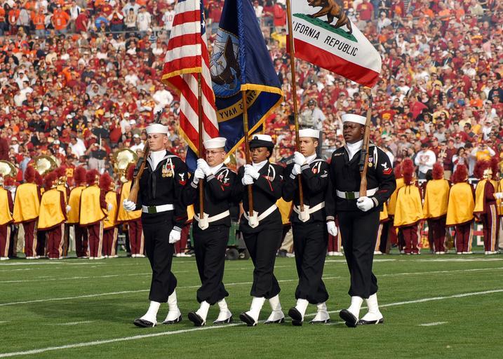 | Keywords: US Navy 080101-N-8607R-062 The Naval Base Ventura County Honor Guard parades the colors as the University of Southern California Marching Band performed the national anthem during the 2008 Rose Bowl game.jpg en PASADENA Calif Jan 1 2008 The Naval Base Ventura County Honor Guard parades the colors as the University of Southern California Marching Band performed the national anthem during the 2008 Rose Bowl game U S Navy photo by Mass Communication Specialist 3rd Class Eva-Marie Ramsaran RELEASED 2008-01-01 080101-N-8607R-062 Navy http //www navy mil/view_image asp id 54250 U S Navy photo by Mass Communication Specialist 3rd Class Eva-Marie Ramsaran PD-USGov-Military-Navy Photographs of military flags of the United States Images from US Navy location PASADENA Calif Color guards of the United States Navy |