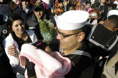 Keywords: US Navy 080125-N-0486G-007 Culinary Specialist 2nd class Eber Varrazh hugs his newborn baby girl for the first time after he walked off the brow of The Guided-Missile Cruiser USS Vicksburg (CG 69).jpg en MAYPORT Fla Jan 25 2008 Culinary Specialist 2nd class Eber Varrazh hugs his newborn baby girl for the first time after he walked off the brow of The Guided-Missile Cruiser USS Vicksburg CG 69 Vicksburg returned home to Naval Station Mayport after a six-month Persian Gulf deployment U S Navy photo by Mass Communication Specialist 2nd Class Daniel Gay Released 2008-01-25 080125-N-0486G-007 Navy http //www navy mil/view_image asp id 54789 U S Navy photo by Mass Communication Specialist 2nd Class Daniel Gay PD-USGov-Military-Navy Culinary specialist United States Navy Naval Station Mayport USS Vicksburg CG-69 |