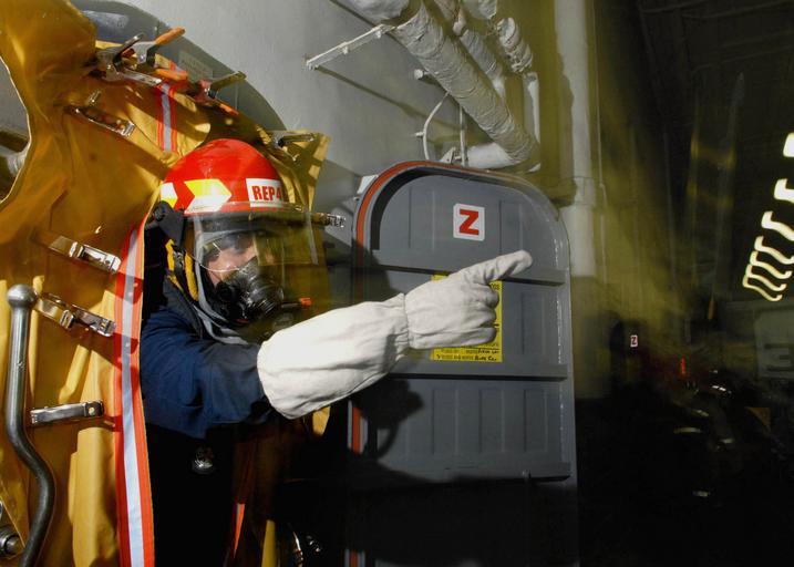 | Keywords: US Navy 080130-N-7981E-036 A member of a hose team calls for personnel to relieve his team while fighting a simulated fire during a general quarters drill aboard the Nimitz-class aircraft carrier USS Abraham Lincoln (CVN 72).jpg en PACIFIC OCEAN Jan 30 2008 A member of a hose team calls for personnel to relieve his team while fighting a simulated fire during a general quarters drill aboard the Nimitz-class aircraft carrier USS Abraham Lincoln CVN 72 Lincoln part of Carrier Strike Group CSG 9 is participating in Joint Task Force Exercise off the coast of Southern California U S Navy photo by Mass Communication Specialist 2nd Class James R Evans Released 2008-01-30 080130-N-7981E-036 Navy http //www navy mil/view_image asp id 54955 U S Navy photo by Mass Communication Specialist 2nd Class James R Evans PD-USGov-Military-Navy Aboard USS Abraham Lincoln CVN-72 Pointing right Watertight doors |