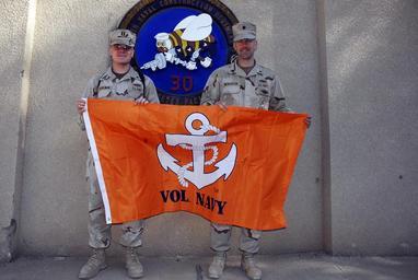 Keywords: US Navy 080201-N-8190H-016 Operations Officer Lt. Cmdr. David McAlister and Communications Officer Lt. Alan Eichelman, both assigned to the 30th Naval Construction Regiment (NCR)(Forward), show their.jpg en CAMP FALLUJAH Iraq Feb 1 2008 Operations Officer Lt Cmdr David McAlister and Communications Officer Lt Alan Eichelman both assigned to the 30th Naval Construction Regiment NCR Forward show their Volunteer colors in front of the regimental headquarters in Camp Fallujah Both Seabees are alumni of the University of Tennessee-Knoxville The 30th NCR Fwd directs more than 1 400 Sailors Marines and Soldiers supporting critical construction efforts in the Al Anbar Province of Iraq providing responsive military construction support to U S military and coalition operations U S Navy photo by Mass Communication Specialist 1st Class Christine Hannon Released 2008-02-01 080201-N-8190H-016 Navy http //www navy mil/view_image asp id 55407 U S Navy photo by Mass Communication Specialist 1st Class Christine Hannon PD-USGov-Military-Navy MEK Compound Fallujah Iraq |