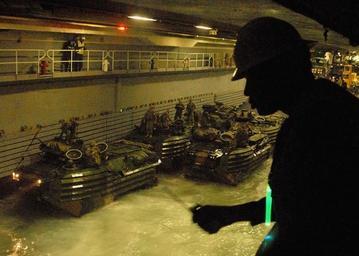 | Keywords: US Navy 080211-N-5067K-096 Chief Boatswain's Mate Alan N. Daniel directs the recovery of amphibious assault vehiclesin the well deck of USS Juneau (LPD 10).jpg en PACIFIC OCEAN Feb 11 2008 Chief Boatswain's Mate Alan N Daniel directs the recovery of amphibious assault vehicles from Golf Co Battalion Landing Team 2nd Battalion 4th Marines BLT 2/4 of the 31st Marine Expeditionary Unit MEU in the well deck of USS Juneau LPD 10 Juneau and the 31st MEU are participating in the amphibious integration training exercise EVALEX '08 Juneau is the Navy's only permanently forward deployed amphibious transport dock ship and part of the Essex Expeditionary Strike Group forward deployed to Sasebo Japan U S Navy photo by Mass Communication Specialist 1st Class Michael D Kennedy Released 2008-02-11 080211-N-5067K-096 Navy http //www navy mil/view_image asp id 55157 U S Navy photo by Mass Communication Specialist 1st Class Michael D Kennedy PD-USGov-Military-Navy Aboard USS Juneau LPD-10 Amphibious Assault Vehicle Well decks 4th Marine Regiment United States |