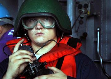 | Keywords: US Navy 080609-N-9604C-083 Boatswain's Mate Seaman Aaron Turner uses sound-powered phones to communicate information regarding fuel consumption.jpg  en INDIAN OCEAN June 9 2008 Boatswain's Mate Seaman Aaron Turner uses sound-powered phones to communicate information regarding fuel consumption on the starboard side of the amphibious assault ship USS Peleliu LHA 5 during a replenishment at sea with the Military Sealift Command fleet replenishment oiler USNS Walter S Diehl Peleliu is conducting exercises in the Indian Ocean on a scheduled deployment U S Navy photo by Mass Communication Seaman Shannon K Cassidy Released 2008-06-09 080609-N-9604C-083 Navy http //www navy mil/view_image asp id 60062 U S Navy photo by Mass Communication Seaman Shannon K Cassidy PD-USGov-Military-Navy Phone talkers underway replenishment Aboard USS Peleliu LHA-5 People of the United States Navy with sound-powered telephones |