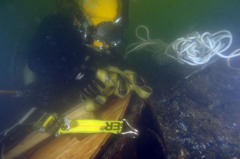 Keywords: US Navy 080613-N-5329L-005 Diver 1st Class Mark Sawyer, assigned to Mobile Diving and Salvage Unit 2, Co. 21 based in Virginia Beach, Va., places a ratchet strap across a large patch.jpg en Providence RI June 13 2008 Diver 1st Class Mark Sawyer assigned to Mobile Diving and Salvage Unit 2 Co 21 based in Virginia Beach Va places a ratchet strap across a large patch that will be used to seal one of the escape hatches of the sunken former Soviet submarine Juliett 484 at the bottom of the Providence River U S Navy and Army divers and with federal state and local authorities are participating in a joint service operation to raise the submarine from the water at Collier Point Park in Providence R I U S Navy photo by Mass Communication Specialist 1st Class Eric Lippmann Released 2008-06-13 080613-N-5329L-005 Navy http //www navy mil/view_image asp id 60308 U S Navy photo by Mass Communication Specialist 1st Class Eric Lippmann PD-USGov-Military-Navy Images from US Navy location Providence RI Underwater photographs of surface supplied divers K-77 submarine 1965 United States Navy Mobile Diving and Salvage Unit Two Underwater work Ratchet straps |