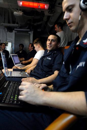 Keywords: US Navy 080615-N-4133B-027 Sailors enjoy down time during.jpg en PACIFIC OCEAN June 15 2008 Sailors enjoy down time during holiday routine aboard the Nimitz-class aircraft carrier USS Ronald Reagan CVN 76 The Ronald Reagan Carrier Strike Group is on a scheduled deployment The Ronald Reagan Carrier Strike Group is deployed to the 7th Fleet area of responsibility operating in the western Pacific and Indian oceans U S Navy photo by Mass Communication Specialist 3rd Class Benjamin Brossard Released 2008-06-15 080615-N-4133B-027 Navy http //www navy mil/view_image asp id 60244 U S Navy photo by Mass Communication Specialist 3rd Class Benjamin Brossard PD-USGov-Military-Navy Aboard USS Ronald Reagan CVN-76 People using computers in the 2000s |