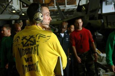 Keywords: US Navy 080618-N-8854R-023 Aviation Boatswain's Mate (Handling) Airman Thomas Bundy supervises Sailors taking part in a foreign object debris (FOD) walkdown in the hangar bay of the aircraft carrier USS Kitty Hawk (CV 63).jpg en PACIFIC OCEAN June 18 2008 Aviation Boatswain's Mate Handling Airman Thomas Bundy supervises Sailors taking part in a foreign object debris FOD walkdown in the hangar bay of the aircraft carrier USS Kitty Hawk CV 63 Walkdowns are conducted to remove trash that can damage aircraft engines if ingested Sailors walk the length of the hangar bay in rows picking up any loose objects on the deck three times a day Kitty Hawk is returning to the United States for decommissioning after 47 years of service The ship will be replaced by the nuclear-powered aircraft carrier USS George Washington CVN 73 later this summer U S Navy photo by Mass Communication Specialist 3rd Class Matthew Reinhardt Released 2008-06-18 080618-N-8854R-023 Navy http //www navy mil/view_image asp id 60432 U S Navy photo by Mass Communication Specialist 3rd Class Matthew Reinhardt PD-USGov-Military-Navy Aviation Boatswain's Mates Hangar bays of USS Kitty Hawk CV-63 Foreign Object Damage walk downs |