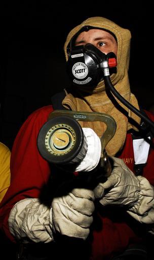 Keywords: US Navy 080622-N-2610F-023 Damage Controlman Fireman Kyle Buck fights a simulated Class Bravo fire in hangar bay 3 during a flying squad drill aboard the Nimitz-class aircraft carrier USS John C. Stennis (CVN 74).jpg en PACIFIC OCEAN June 22 2008 Damage Controlman Fireman Kyle Buck fights a simulated Class Bravo fire in hangar bay 3 during a flying squad drill aboard the Nimitz-class aircraft carrier USS John C Stennis CVN 74 The flying squad is Stennis' rapid response fire-fighting team that combats damage control casualties while import or underway Stennis and multiple embarked fleet replacement squadrons are conducting fleet replacement squadron carrier qualifications FRSCQ off the coast of Southern California FRSCQ's are conducted to qualify naval aviators in day and night carrier operations for the first time in the aircraft they will fly during their aviation career U S Navy photo by Mass Communication Specialist 2nd Class Elliott J Fabrizio Released 2008-06-22 080622-N-2610F-023 Navy http //www navy mil/view_image asp id 60554 U S Navy photo by Mass Communication Specialist 2nd Class Elliott J Fabrizio PD-USGov-Military-Navy Damage Controlman Aboard USS John C Stennis CVN-74 Photographs of men with black background |