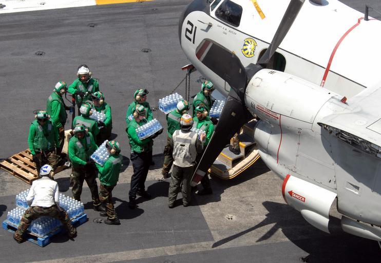 Keywords: US Navy 080625-N-4005H-002 Sailors load cases of water bound for the Philippines onto a C-2A Greyhound assigned to the.jpg en PACIFIC OCEAN June 25 2008 Sailors load cases of water bound for the Philippines onto a C-2A Greyhound assigned to the Providers of Fleet Logistics Combat Support Squadron VRC 30 on the flight deck of the Nimitz-class aircraft carrier USS Ronald Reagan CVN 76 Ronald Reagan sent 12 000 bottles of water and 7 500 pounds of Rice to the Philippines supporting disaster relief efforts The Ronald Reagan Carrier Strike Group is support the government of the Republic of the Philippines to help provide humanitarian assistance and disaster relief to the victims of Typhoon Fengshen U S Navy photo by Mass Communication Specialist 3rd Class Aaron Holt Released 2008-06-25 080625-N-4005H-002 Navy http //www navy mil/view_image asp id 60590 U S Navy photo by Mass Communication Specialist 3rd Class Aaron Holt PD-USGov-Military-Navy USS Ronald Reagan CVN-76 humanitarian aid Grumman C-2 Greyhound Fleet Logistics Support Squadron 30 United States Navy Typhoon Fengshen 2008 Bottled water |