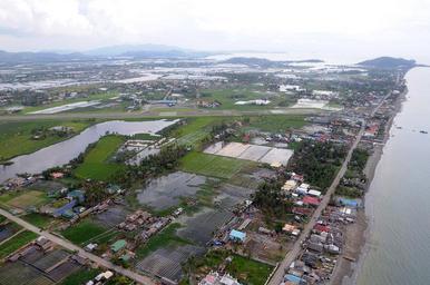 Keywords: US Navy 080626-N-5961C-006 High above Roxas, standing water is visible after the wake of Typhoon Fengshen.jpg en ROXAS Philippines June 26 2008 High above Roxas standing water is visible after the wake of Typhoon Fengshen The northern part of the island was heaviest hit by the typhoon At the request of the government of the Republic of the Philippines the Nimitz-class aircraft carrier USS Ronald Reagan CVN 76 is off the coast of Panay Island providing humanitarian assistance and disaster response Ronald Reagan and other U S Navy ships are operating in the 7th Fleet area of responsibility to promote peace cooperation and stability U S Navy photo by Senior Chief Mass Communication Specialist Spike Call Released 2008-06-26 080626-N-5961C-006 Navy http //www navy mil/view_image asp id 60674 U S Navy photo by Senior Chief Mass Communication Specialist Spike Call PD-USGov-Military-Navy Typhoon Fengshen 2008 Roxas City |