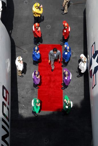 Keywords: US Navy 080713-N-1635S-001 Governor Moon Soo Kim, of Kyong Gi Do Province, Republic of Korea (ROK), receives honors from rainbow sideboys.jpg en PACIFIC OCEAN July 13 2008 Governor Moon Soo Kim of Kyong Gi Do Province Republic of Korea ROK receives honors from rainbow sideboys after landing aboard the Nimitz-class aircraft carrier USS Ronald Reagan CVN 76 ROK government and military officials spent the day touring the ship to experience shipboard operations The Ronald Reagan Carrier Strike Group is on a scheduled deployment in the 7th Fleet area of responsibility operating in the western Pacific and Indian oceans U S Navy photo by Mass Communication Specialist 3rd Class Joshua Scott Released 2008-07-13 080713-N-1635S-001 Navy http //www navy mil/view_image asp id 61332 U S Navy photo by Mass Communication Specialist 3rd Class Joshua Scott PD-USGov-Military-Navy Guests aboard USS Ronald Reagan CVN-76 Rainbow sideboys with red carpets |