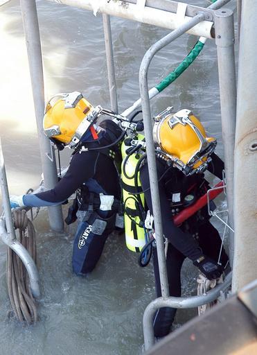 Keywords: US Navy 080722-N-3446M-032 Senior Chief Navy Diver Paul Adams, assigned to Mobile Diving and Salvage Unit (MDSU) 1, and Indonesian Master Sgt. Santosa Efendy, are lowered into the water from the Military Sealift Command rescue.jpg en SURABAYA Indonesia July 22 2008 Senior Chief Navy Diver Paul Adams assigned to Mobile Diving and Salvage Unit MDSU 1 and Indonesian Master Sgt Santosa Efendy are lowered into the water from the Military Sealift Command rescue and salvage ship USNS Safeguard T-ARS 50 for a joint dive in Surabaya Harbor The diving exercise is part of a Naval Engagement Activity NEA between the United States and Indonesia The NEA is part of an annual series of bilateral maritime training exercises designed to build relationships and enhance the operational readiness of the participating forces between the U S and several Southeast Asian nations U S Navy photo by Mass Communication Specialist 1st Class Kim McLendon/Released 2008-07-22 080722-N-3446M-032 Navy http //www navy mil/view_image asp id 61877 U S Navy photo by Mass Communication Specialist 1st Class Kim McLendon PD-USGov-Military-Navy Images from US Navy location Surabaya Indonesia Aboard USNS Safeguard T-ARS-50 United States Navy Divers Mobile Diving and Salvage Unit 1 Diving stages Diving helmets |