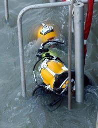 Keywords: US Navy 080722-N-3446M-035 enior Chief Navy Diver Paul Adams, assigned to Mobile Diving and Salvage Unit (MDSU) 1, and Indonesian Master Sgt. Santosa Efendy, are lowered into the water.jpg en SURABAYA Indonesia July 22 2008 Senior Chief Navy Diver Paul Adams assigned to Mobile Diving and Salvage Unit MDSU 1 and Indonesian Master Sgt Santosa Efendy are lowered into the water from the Military Sealift Command rescue and salvage ship USNS Safeguard T-ARS 50 for a joint dive in Surabaya Harbor The diving exercise is part of a Naval Engagement Activity NEA between the United States and Indonesia The NEA is part of an annual series of bilateral maritime training exercises designed to build relationships and enhance the operational readiness of the participating forces between the U S and several Southeast Asian nations U S Navy photo by Mass Communication Specialist 1st Class Kim McLendon/Released 2008-07-22 080722-N-3446M-035 Navy http //www navy mil/view_image asp id 61878 U S Navy photo by Mass Communication Specialist 1st Class Kim McLendon PD-USGov-Military-Navy Images from US Navy location Surabaya Indonesia Aboard USNS Safeguard T-ARS-50 United States Navy Divers Mobile Diving and Salvage Unit 1 Diving stages Diving helmets |