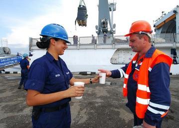 Keywords: US Navy 080827-N-4044H-117 U.S. Coast Guard Seaman Keri Myers gives a Georgian port worker a glass of water, while a pallet of humanitarian assistance supplies is being off-loaded from the U.S. Coast Guard Cutter Dallas (WHEC 7.jpg en BATUMI Georgia Aug 27 2008 U S Coast Guard Seaman Keri Myers gives a Georgian port worker a glass of water while a pallet of humanitarian assistance supplies is being off-loaded from the U S Coast Guard Cutter Dallas WHEC 716 Dallas arrived with more than 76 000 pounds of humanitarian assistance supplies to be delivered to the people of Georgia in response to the request of the government of the Republic of Georgia Dallas is part of Combined Task Force 367 the maritime element of the U S humanitarian assistance mission to Georgia U S Navy photo by Mass Communication Specialist 3rd Class Eddie Harrison/Released 2008-08-27 080827-N-4044H-117 Navy http //www navy mil/view_image asp id 63181 U S Navy photo by Mass Communication Specialist 3rd Class Eddie Harrison PD-USGov-Military-Navy United States Navy in Batumi USCGC Dallas WHEC-716 |
