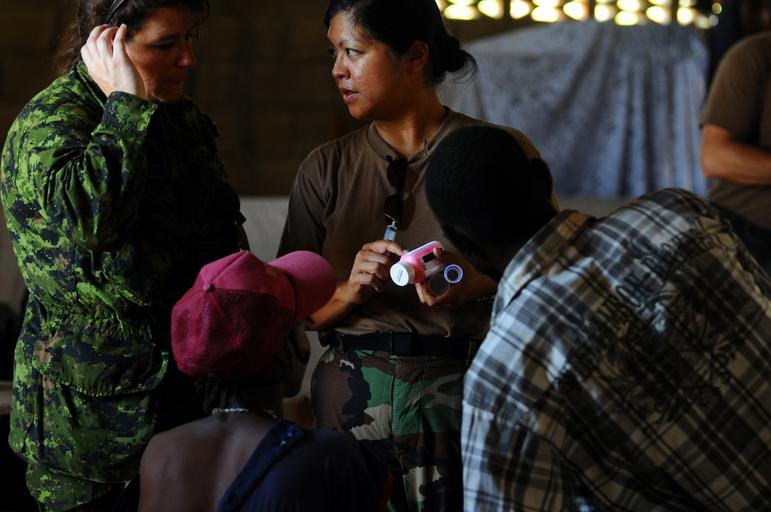 Keywords: US Navy 080917-N-4515N-444 anadian service member Cpl. Eva-Marie Rogerson translates directions for proper use of medicine.jpg en MAROSE Haiti Sept 17 2008 Canadian service member Cpl Eva-Marie Rogerson left a medical augmentee embarked aboard the amphibious assault ship USS Kearsarge LHD 3 translates directions for proper use of medicine Cmdr Angelica Almonte is giving to a local women for her child Kearsarge is supporting humanitarian assistance/disaster relief in Haiti after a series of tropical storms devastated much of the country U S Navy photo by Mass Communication Specialist Seaman Apprentice Joshua Adam Nuzzo/Released 2008-09-17 080917-N-4515N-444 Navy http //www navy mil/view_image asp id 64134 U S Navy photo by Mass Communication Specialist Seaman Apprentice Joshua Adam Nuzzo PD-USGov-Military-Navy Images from US Navy location Marose Haiti Aboard USS Kearsarge LHD-3 People in conversation Military people of the United States in Haiti Military people of Canada in Haiti 2008 in Haiti 0917 September 2008 in Haiti 17 |