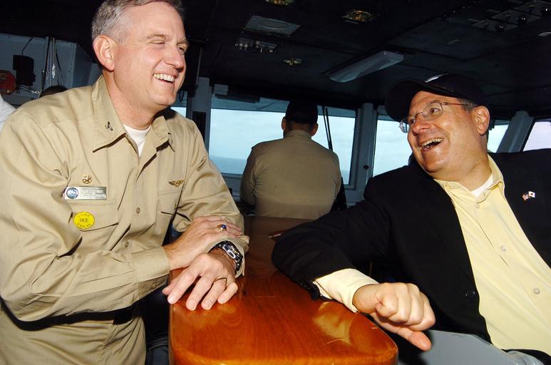 Keywords: US Navy 080917-N-6604E-007 Donald C. Winter and Dee L. Mewbourne 2008.jpg en ATLANTIC OCEAN Sept 17 2008 Secretary of the Navy the Honorabel Dr Donald C Winter speaks with Capt Dee L Mewbourne commanding officer of the Nimitz-class aircraft carrier USS Dwight D Eisenhower CVN 69 Dwight D Eisenhower is underway conducting carrier qualifications in the Atlantic Ocean U S Navy photo by Mass Communication Specialist Seaman Apprentice Bradley Evans/Released 2008-09-17 080917-N-6604E-007 Navy http //www navy mil/view_image asp id 64239 U S Navy photo by Mass Communication Specialist Seaman Apprentice Bradley Evans PD-USGov-Military-Navy Aboard USS Dwight D Eisenhower CVN-69 Dee L Mewbourne Donald C Winter