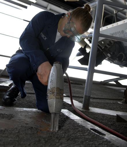 Keywords: US Navy 081011-N-0673M-023 Aviation Ordnanceman Airman Chelsey Krupnick uses a pneumatic grinder to remove non-skid.jpg en PACIFIC OCEAN Oct 11 2008 Aviation Ordnanceman Airman Chelsey Krupnick from Woodland Hills Calif uses a pneumatic grinder to remove non-skid from a deck plate on the fantail aboard the Nimitz-class aircraft carrier USS John C Stennis CVN 74 Stennis is conducting pre-deployment exercises off the coast of Southern California U S Navy Photo By Mass Communication Specialist Seaman Kevin Murphy/Released 2008-10-11 081011-N-0673M-023 Navy http //www navy mil/view_image asp id 65180 U S Navy Photo By Mass Communication Specialist Seaman Kevin Murphy PD-USGov-Military-Navy Aviation Ordnanceman Aboard USS John C Stennis CVN-74 |