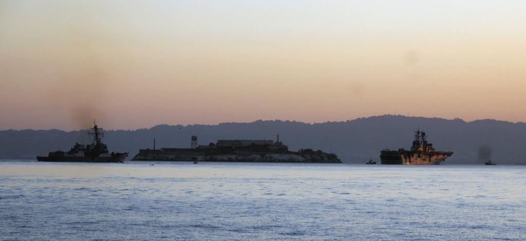 Keywords: US Navy 081012-N-0515W-074 The Arliegh Burke-class guided missile destroyer USS Pickney (DDG 91) and the amphibious assault ship USS Bonhomme Richard (LHD 6) sail pass Alcatraz State Park as they make their way to San Francisco.jpg en PACIFIC OCEAN Oct 12 2008 The Arleigh Burke-class guided missile destroyer USS Pickney DDG 91 and the amphibious assault ship USS Bonhomme Richard LHD 6 sail past Alcatraz State Park as they make their way to San Francisco to participate in San Francisco Fleet Week The event is an opportunity to showcase military personnel equipment technology and capabilities while highlighting naval history within the San Francisco area U S Navy photo by Mass Communication Specialist 2nd Class Drew Williams Released 2008-10-12 081012-N-0515W-074 Navy http //www navy mil/view_image asp id 65189 U S Navy photo by Mass Communication Specialist 2nd Class Drew Williams PD-USGov-Military-Navy General views of USS Bonhomme Richard LHD-6 Fleet Week San Francisco 2008 |