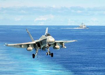 Keywords: US Navy 081013-N-1644H-265 An F-A-18C Hornet from Strike Fighter Squadron (VFA) 192, the.jpg en PACIFIC OCEAN Oct 13 2008 An F/A-18C Hornet from Strike Fighter Squadron VFA 192 the Golden Dragons lands aboard USS George Washington CVN 73 with USS Cowpens CG 63 in the background The George Washington Carrier Strike Group is back at sea training in the Pacific Ocean after recently participating in the International Fleet Review in Busan Republic of Korea U S Navy photo by Mass Communication Specialist 1st Class John M Hageman/Released 2008-10-13 081013-N-1644H-265 Navy http //www navy mil/view_image asp id 65316 U S Navy photo by Mass Communication Specialist 1st Class John M Hageman PD-USGov-Military-Navy USS Cowpens CG-63 F/A-18C Hornet in flight Strike Fighter Squadron 192 United States Navy |