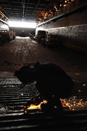 Keywords: US Navy 081111-N-8907D-231 Hull technician Fireman Matt Tully, assigned to the amphibious assault ship USS Kearsarge (LHD 3), repairs the ramp leading to the well deck.jpg en ATLANTIC OCEAN Nov 11 2008 Hull technician Fireman Matt Tully assigned to the amphibious assault ship USS Kearsarge LHD 3 repairs the ramp leading to the well deck Kearsarge is supporting the Caribbean Phase of the humanitarian and civic assistance mission Continuing Promise 2008 an equal partnership mission between the United States Canada the Netherlands Brazil Nicaragua Colombia Dominican Republic Trinidad and Tobago and Guyana U S Navy photo by Mass Communication Specialist 3rd Class David Danals/Released 2008-11-11 081111-N-8907D-231 Navy http //www navy mil/view_image asp id 66433 U S Navy photo by Mass Communication Specialist 3rd Class David Danals PD-USGov-Military-Navy Aboard USS Kearsarge LHD-3 Well decks |