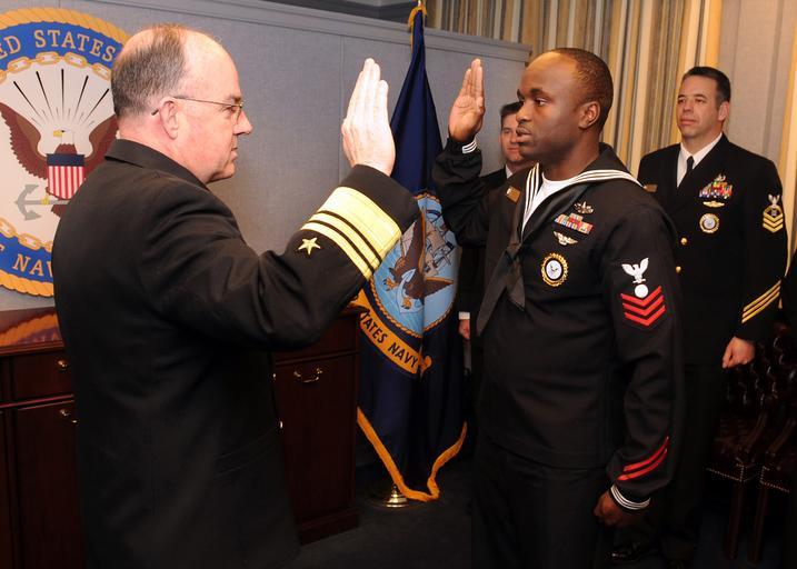 | Keywords: US Navy 090106-N-7948R-004 Vice Adm. John C. Harvey, Jr. meritoriously promotes Electricians Mate 1st Class Curtis Bembow.jpg en WASHINGTON Jan 6 2009 Vice Adm John C Harvey Jr director Navy Staff meritoriously promotes Electricians Mate 1st Class Curtis Bembow Bembow was the only recruiter of the year promoted to the next pay grade among 15 of the Navy's Recruiters of the Year ROY Navy Recruiting Command hosts its ROY awards program annually in Washington The program includes meetings with senior Navy leadership various dignitaries and visits to national historical sites U S Navy photo by Mass Communication Specialist 3rd Class Michael Russell/Released 2009-01-06 090106-N-7948R-004 Navy http //www navy mil/view_image asp id 67724 U S Navy photo by Mass Communication Specialist 3rd Class Michael Russell PD-USGov-Military-Navy Military in Washington D C |