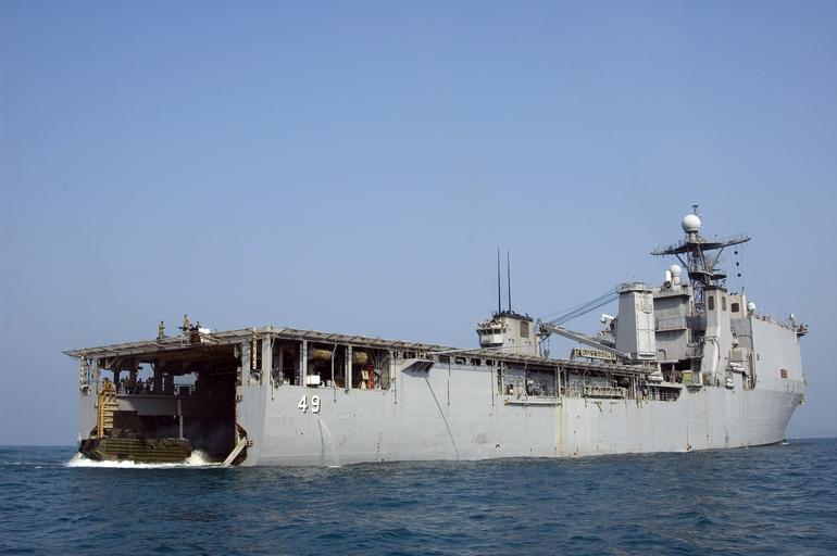 | Keywords: US Navy 090213-N-1251W-020 An amphibious assault vehicle assigned to the 31st Marine Expeditionary Unit (MEU) launches from the well-deck of the amphibious dock landing ship USS Harpers Ferry (LSD 49) during Exercise Cobra Gold.jpg en UTAPHAO Thailand Feb 13 2009 An amphibious assault vehicle assigned to the 31st Marine Expeditionary Unit MEU launches from the well-deck of the amphibious dock landing ship USS Harpers Ferry LSD 49 during Exercise Cobra Gold 2009 Harpers Ferry and the 31st MEU are taking part in Exercise Cobra Gold an annual Thailand and U S co-sponsored joint coalition multinational military exercise designed to train a Thai U S and Singaporean Coalition Task Force The exercise will also include humanitarian civic action projects with participating nations from Indonesia Japan Singapore Thailand and the U S U S Navy photo by Mass Communication Specialist 2nd Class Matthew R White/Released 2009-02-13 090213-N-1251W-020 Navy http //www navy mil/view_image asp id 69257 U S Navy photo by Mass Communication Specialist 2nd Class Matthew R White PD-USGov-Military-Navy U-Tapao Royal Thai Navy Airfield Cobra Gold 2009 Amphibious Assault Vehicle well deck launches General views of USS Harpers Ferry LSD-49 |