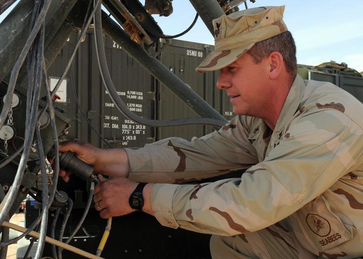 | Keywords: US Navy 090217-N-1120L-005 Information Systems Technician 1st Class Alan Decker, assigned to Naval Mobile Construction Battalion (NMCB) 7, inserts a cord into the transmitter dish of a Ruggedized Deployable Satellite Communicat.jpg en HELMAND PROVINCE Afghanistan Feb 17 2009 Information Systems Technician 1st Class Alan Decker assigned to Naval Mobile Construction Battalion NMCB 7 inserts a cord into the transmitter dish of a Ruggedized Deployable Satellite Communications RDSAT system while performing routine maintenance checks The RDSAT system is a deployable asset that allows a battalion to effectively communicate with email and phone services even when deployed to remote areas This is the first time the RDSAT has been deployed with a Seabee battalion NMCB 7 is deployed to Afghanistan providing contingency construction support to Alliance forces supporting the NATO International Security Assistance Force U S Navy photo by Mass Communication Specialist 2nd Class Michael B Lavender/Released 2009-02-17 090217-N-1120L-005 Navy http //www navy mil/view_image asp id 69268 U S Navy photo by Mass Communication Specialist 2nd Class Michael B Lavender PD-USGov-Military-Navy Helmand Province in the War in Afghanistan 2001-present Information Systems Technician United States Navy |