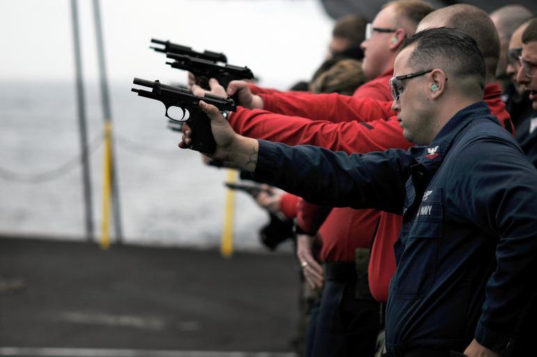 Keywords: US Navy 090317-N-3610L-621 Aviation Ordnanceman 2nd Class Jeffery Thompson reaches for his second magazine of ammunition during a live-fire exercise aboard the aircraft carrier USS Ronald Reagan (CVN 76).jpg en PACIFIC OCEAN March 17 2009 Aviation Ordnanceman 2nd Class Jeffery Thompson reaches for his second magazine of ammunition during a live-fire exercise aboard the aircraft carrier USS Ronald Reagan CVN 76 The Ronald Reagan weapons department is trained in a variety of weapons including 9mm pistols grenades and 50 caliber machine guns Ronald Reagan is underway conducting sustainment exercises in the Pacific Ocean U S Navy photo by Mass Communication Specialist 3rd Class Torrey William Lee/Released 2009-03-17 090317-N-3610L-621 Navy http //www navy mil/view_image asp id 69765 U S Navy photo by Mass Communication Specialist 3rd Class Torrey William Lee PD-USGov-Military-Navy Aviation Ordnanceman Firearms training on USS Ronald Reagan CVN-76 Beretta 92 |