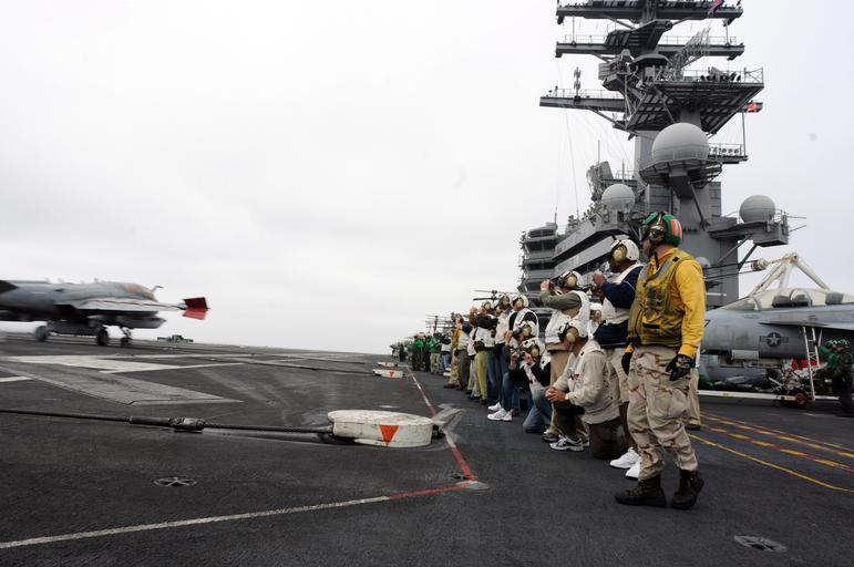 | Keywords: US Navy 090319-N-3610L-533 A group of distinguished visitors observe an EA-6B Prowler make an arrested landing.jpg en PACIFIC OCEAN March 19 2009 A group of distinguished visitors observe an EA-6B Prowler assigned to the Cougars of Tactical Electronic Warfare Squadron VAQ 139 make an arrested landing aboard the Nimitz-class aircraft carrier USS Ronald Reagan CVN 76 Ronald Reagan is conducting sustainment exercises in the Pacific Ocean U S Navy photo by Mass Communication Specialist 3rd Class Torrey W Lee/Released 2009-03-19 090319-N-3610L-533 Navy http //www navy mil/view_image asp id 69832 U S Navy photo by Mass Communication Specialist 3rd Class Torrey W Lee PD-USGov-Military-Navy Grumman EA-6 Prowler aircraft carrier landings Aircraft landing on USS Ronald Reagan CVN-76 Electronic Attack Squadron 139 United States Navy Guests aboard USS Ronald Reagan CVN-76 Arrestor cables on USS Ronald Reagan CVN-76 |