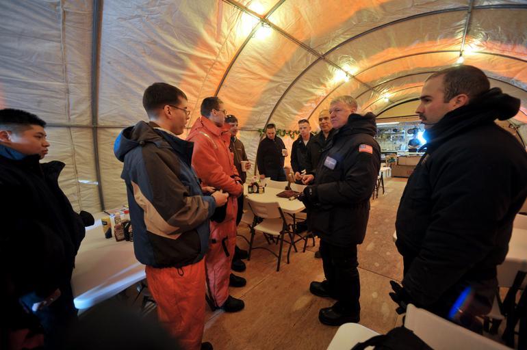 MAKE A MEME View Large Image Navy 090321-N-8273J-465 Chief of Naval Operations (CNO) Adm. Gary Roughead speaks with Sailors from the Los Angeles-class submarine USS Annapolis (SSN 760) while visiting the Applied Physics Lab Ice Station camp in the Arcti.jpg en ARCTIC ...